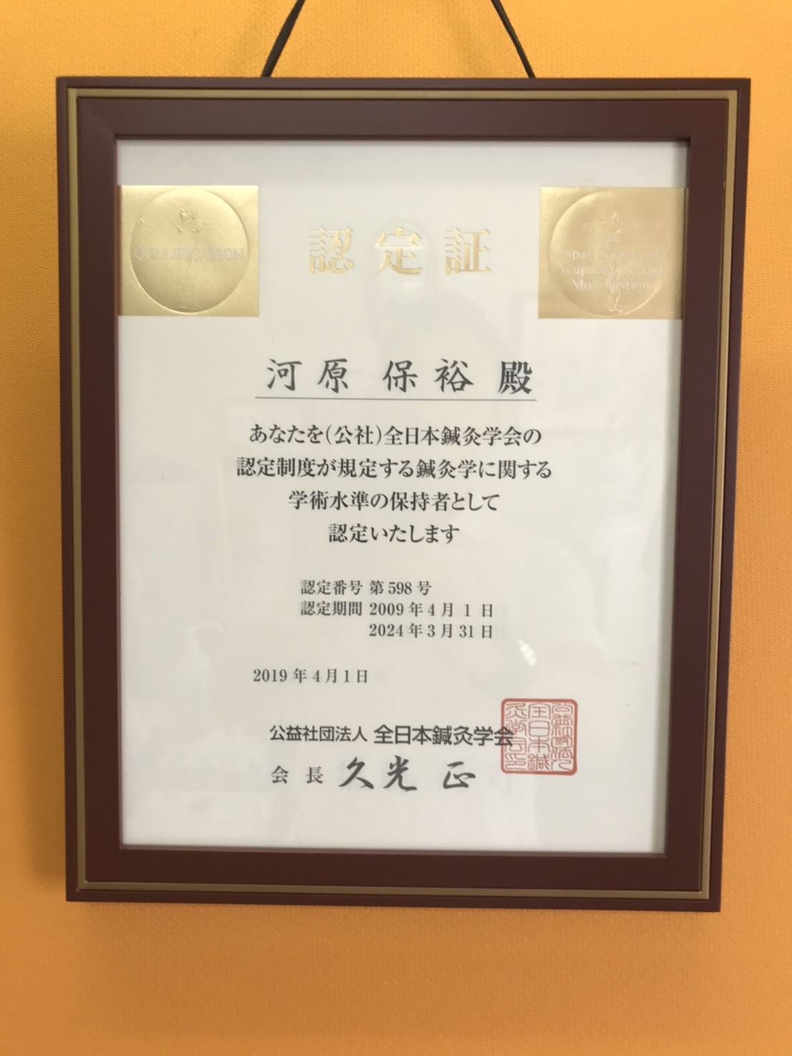 公益社団法人 全日本鍼灸学会 認定鍼灸師 |
